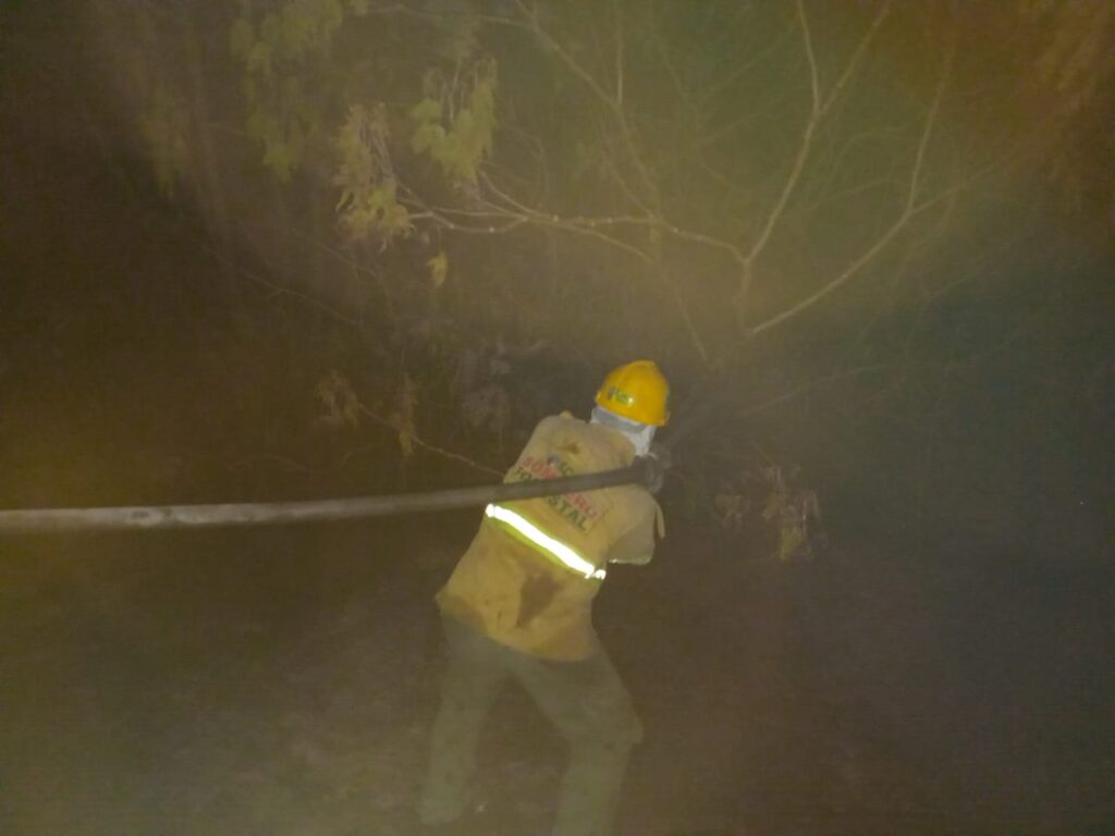 SÁBADO 26 DE JULIO: En horas 18:10 pm. de la tarde, La Fundación Voluntaria De Bomberos y Rescate FVFEROS, activa su Unidad de Bomberos Forestales al recibir la llamada de emergencia, por incendio de interface, en el sector del KM 11 SECTOR DEL MERCADO NUEVO VALLES CRUCEÑOS, DISTRITO 4 DEL MUNICIPIO DE LA GUARDIA. donde avanzamos con una dotación de personal, equipos y herramientas y un vehículo de Ataque Rápido, en la cual se realizaron tareas de control y liquidación del incendio de interface presente en la zona. Luego de haber controlado el incendio de manera eficiente nuestro personal de BOMBEROS VOLUNTARIOS DE FV-FEROS LA GUARDIA RETORNARON A BASE.