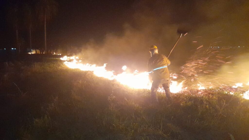 LUNES 28 DE JULIO: En horas 18:50 pm. de la tarde, La Fundación Voluntaria De Bomberos y Rescate FVFEROS, activa su Unidad de Bomberos Forestales al recibir la llamada de emergencia, por incendio de interface, en el sector de la URB. DON MIGUEL, DISTRITO 4 DEL MUNICIPIO DE LA GUARDIA. donde avanzamos con una dotación de personal, equipos y herramientas y un vehículo de Ataque Rápido, en la cual se realizaron tareas de control y liquidación del incendio de interface presente en la zona. Luego de haber controlado el incendio de manera eficiente nuestro personal de BOMBEROS VOLUNTARIOS DE FV-FEROS LA GUARDIA RETORNARON A BASE.