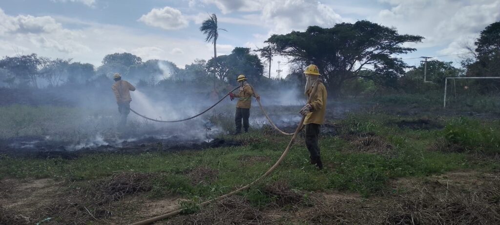 LUNES 11 DE AGOSTO: En horas 13:15 pm. de la tarde, La Fundación Voluntaria De Bomberos y Rescate FVFEROS, activa su Unidad de Bomberos Forestales al recibir la llamada de emergencia, por Incendio interface, en el sector de la URB. LOS PIYOS, DEL DISTRITO 3 DEL MUNICIPIO DE LA GUARDIA. donde avanzamos con una dotación de personal, equipos y herramientas y un vehículo de Ataque Rápido, en la cual se realizaron tareas de control y liquidación del incendio de interface presente en la zona. Luego de haber controlado el incendio de manera eficiente nuestro personal de BOMBEROS VOLUNTARIOS DE FV-FEROS LA GUARDIA RETORNARON A BASE