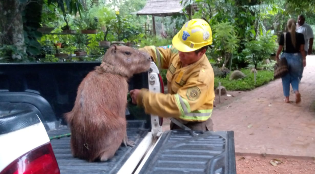 FOTOS DEL RESCATE ANIMAL EN EL AREA URBANA DE UNA "CAPIGUARA"
