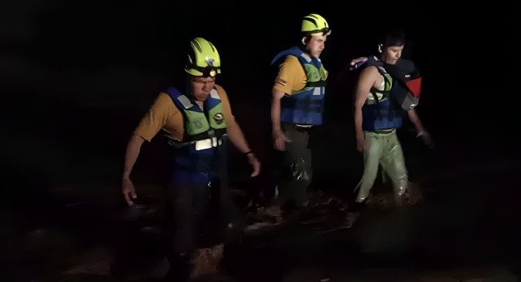 DOMINGO 11 DE febrero: En horas 19:45 pm. de la noche, La Fundación Voluntaria De Bomberos y Rescate FVFEROS, activa su Unidad de rescate en agua al recibir la llamada de emergencia, por personas atrapadas por Crecidas de Río, en todo el sector DEL KM 15 ENTRADA A PORONGO, DISTRITO 4 DEL MUNICIPIO DE LA GUARDIA, donde avanzamos con una dotación de personal, equipos y un vehículo del municipio de La Guardia, en la cual se realizaron tareas de RESCATE EN AGUA, Luego de haber realizados las tareas de rescate en agua y haber podido rescatar a las 9 personas atrapadas, nuestro personal de bomberos voluntarios de FV-FEROS LA GUARDIA retornaron a BASE.